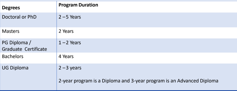 - If the program duration is 2 years or more - Post Study Work Visa will be issued upto 3 years.